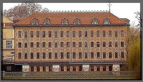 sur une ossature métallique, la brique vernissée en plusieurs