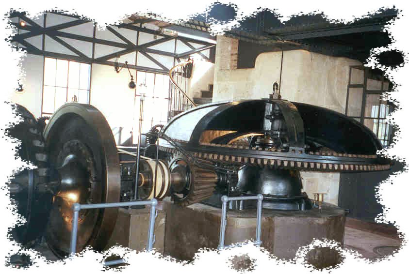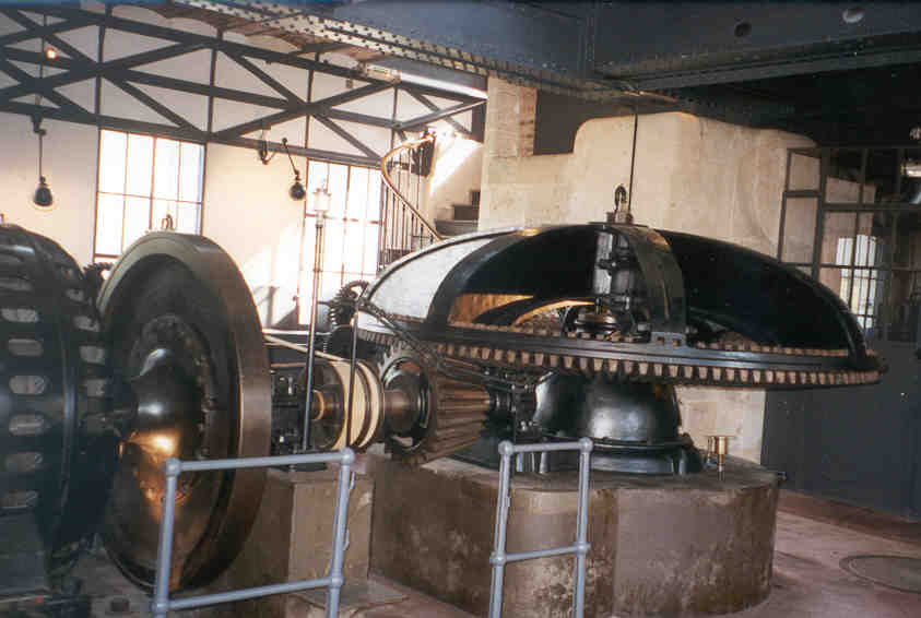 moteurs hydrauliques installés dans le Moulin Saulnier mettent