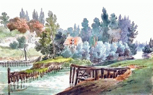 au nombre de 6 avant l'ensablement des lieux. Sur cette aquarelle le Moulin