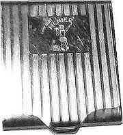 Sur une face, une tôle lithographiée estampée d'après Firmin Bouisset. Les prises sont décorées par des têtes de lion. A l'intérieur un pot en grès de 56 cm pour un diamètre de 34 cm. Ce percolateur était utilisé pendant l'exposition universelle de 1900. |
