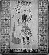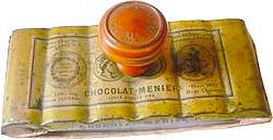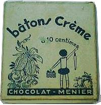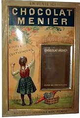 Menier en carton,destinée à la vente de bâtons de chocolat