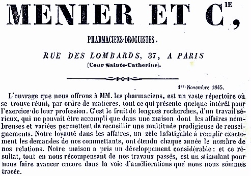1832, Jean-Antoine-Brutus Menier édite un "catalogue prix