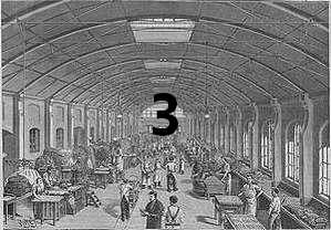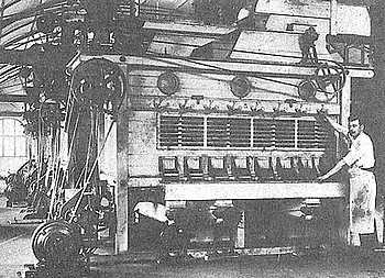 A droite, les moules sont pris sur des tables de fonte spéciales