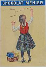l'affiche du Chocolat Ménier : c'est une petite fille qui s'applique