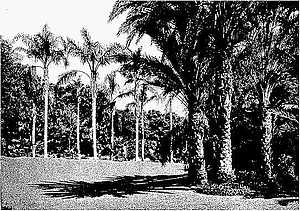 géants de l'espèce végétale. D'autres spécimens de Palmiers, un Jubéa au tronc