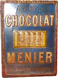 Menier en carton,destinée à la vente de bâtons de chocolat