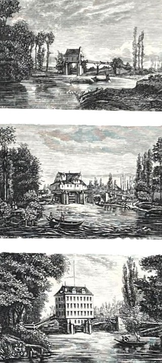 ![]() Gravures sur bois incluses dans l'ouvrage, représentant les 3 évolutions sous l'ère Jean Antoine Brutus. De bas en haut:1825/1842/1853 |