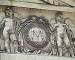 " Au-dessous, un écusson sur lequel est sculptée, en bas-relief,