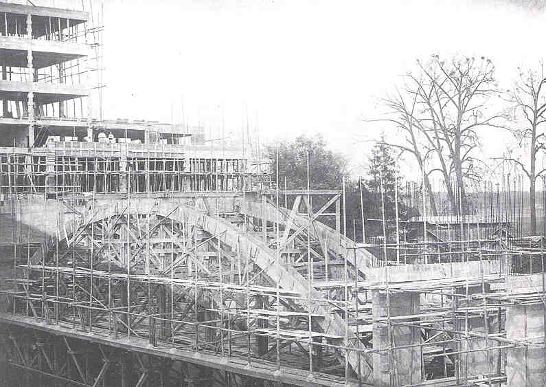 béton armé reliant la Cathédrale au bâtiment de dressage par le rez-de-chaussée