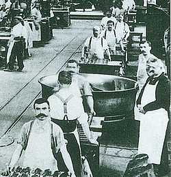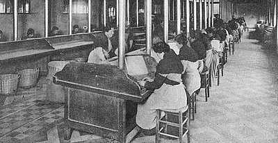A droite, les moules sont pris sur des tables de fonte spéciales